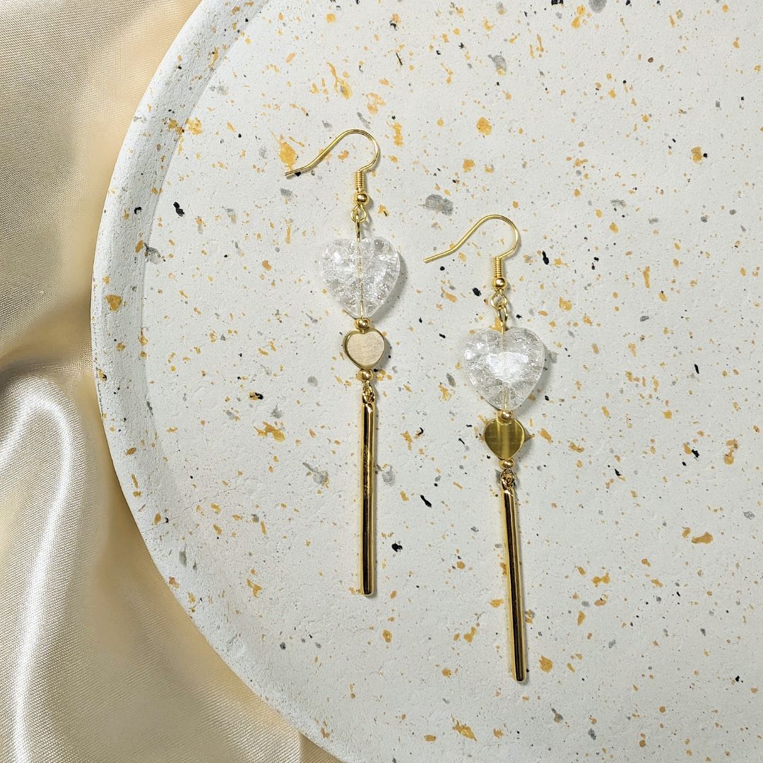 - Cœur en verre transparent, effet craquelé